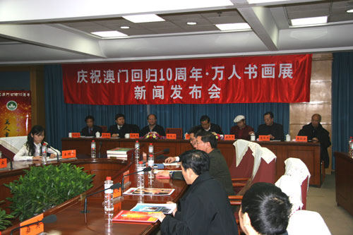 30日下午,“慶祝澳門回歸10周年•萬人書畫展新聞發(fā)布會”在文化部召開,由此正式拉開“中華民族大團(tuán)結(jié)萬歲•萬人書畫展——慶祝澳門回歸10周年”序幕。