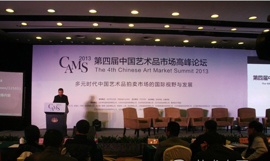 2013年12月23日,由北京市文化局、中國拍賣行業(yè)協(xié)會作為指導單位,99藝術網主辦的“第四屆中國藝術品市場高峰論壇(CAMS 2013)”在北京亞洲大酒店召開。本屆高峰論壇主題是:多元時代中國藝術品拍賣市場的國際視野與發(fā)展。中國內地、香港、臺灣,以及國際范圍的藝術品拍賣、畫廊經紀、藝術收藏、藝術市場研究、文化創(chuàng)意產業(yè)管理等各領域的領軍人物,聚首歲末。另外,有近300家主流媒體代表,共同分享一年來藝術品市場所取得的輝煌成果,共同面對和探討解決一年間出現(xiàn)的各種行業(yè)現(xiàn)象和問題,共同商討來年的行業(yè)發(fā)展大計,共同探尋行業(yè)未來新的增長點和發(fā)展方略。