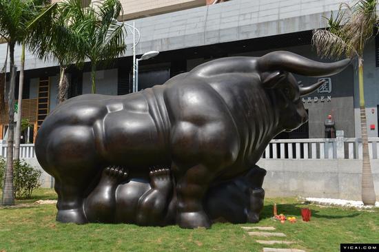 福建省廈門市,心和美術園門口的一座新雕塑吸引了不少市民駐足圍觀,雕塑是一頭牛身下壓著一頭熊,讓不少人聯(lián)想到了股市。記者了解到,此雕塑主人為知名收藏家蔡銘超。蔡銘超向記者證實,這個雕塑確與股市有關。他表示,此雕塑或為世界最大銅牛雕塑,下一步可能申請吉尼斯紀錄。