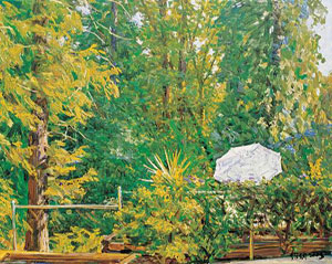 我熱衷于現(xiàn)實(shí)的風(fēng)景寫生,以“擁抱”大自然為樂。在景觀的尋覓中,時(shí)因發(fā)現(xiàn)美的景點(diǎn)而激動(dòng),如不能及時(shí)去畫,總有難以釋懷之感。我總要求自己成為全天候的畫家。無論陰晴、朝暮、雨雪,都視為藝術(shù)表現(xiàn)自然美的機(jī)遇,不能輕易錯(cuò)過。在現(xiàn)場選好最佳角度,是坐著畫,還是站著畫,完全從表現(xiàn)意境需要為出發(fā)點(diǎn)。在可坐可站的情況下,寧肯選擇站立作畫。因?yàn)檎局?,揮寫、進(jìn)退自如,便于施展“拳腳”,抒發(fā)情感,有利于掌握色彩對(duì)比的遠(yuǎn)觀效果。