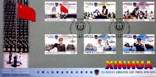 這是香港郵政署展出的即將發(fā)行的《中國(guó)人民解放軍駐香港部隊(duì)》郵票首日封( 6月9日攝)。香港郵政署將于6月30日發(fā)行一套向中國(guó)人民解放軍駐香港部隊(duì)致敬的特別郵票。據(jù)介紹,《中國(guó)人民解放軍駐香港部隊(duì)》特別郵票一套6枚,內(nèi)容分別為“威武文明之師”、“社會(huì)服務(wù)”、“開(kāi)放日”、“陸軍”、“海軍”和“空軍”,以展示駐香港部隊(duì)的精神面貌。